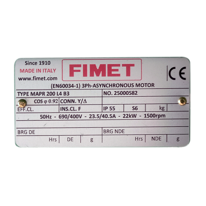 MOTOR FIMET TRIFASICO MAPR-200-L4 22 KW